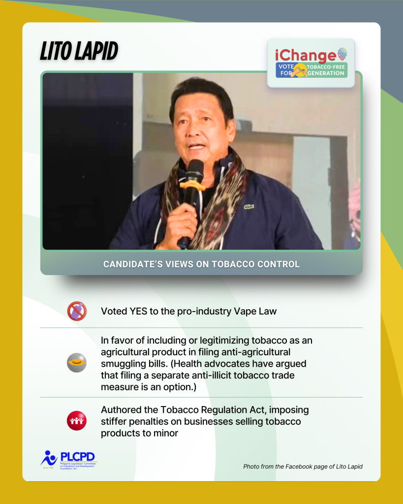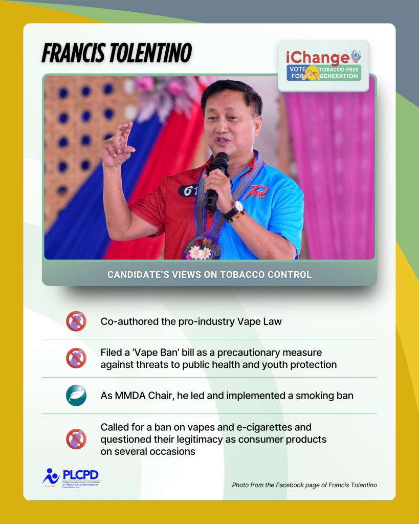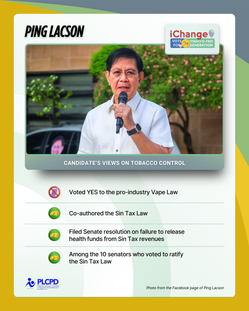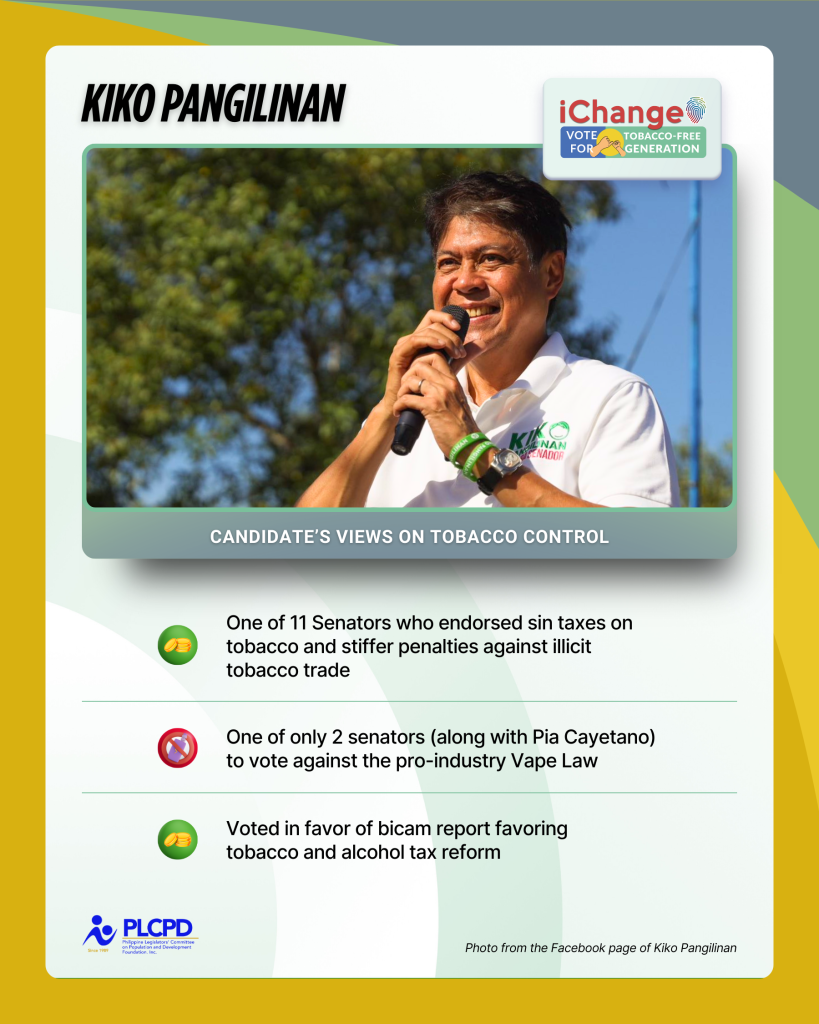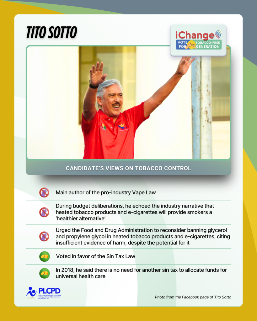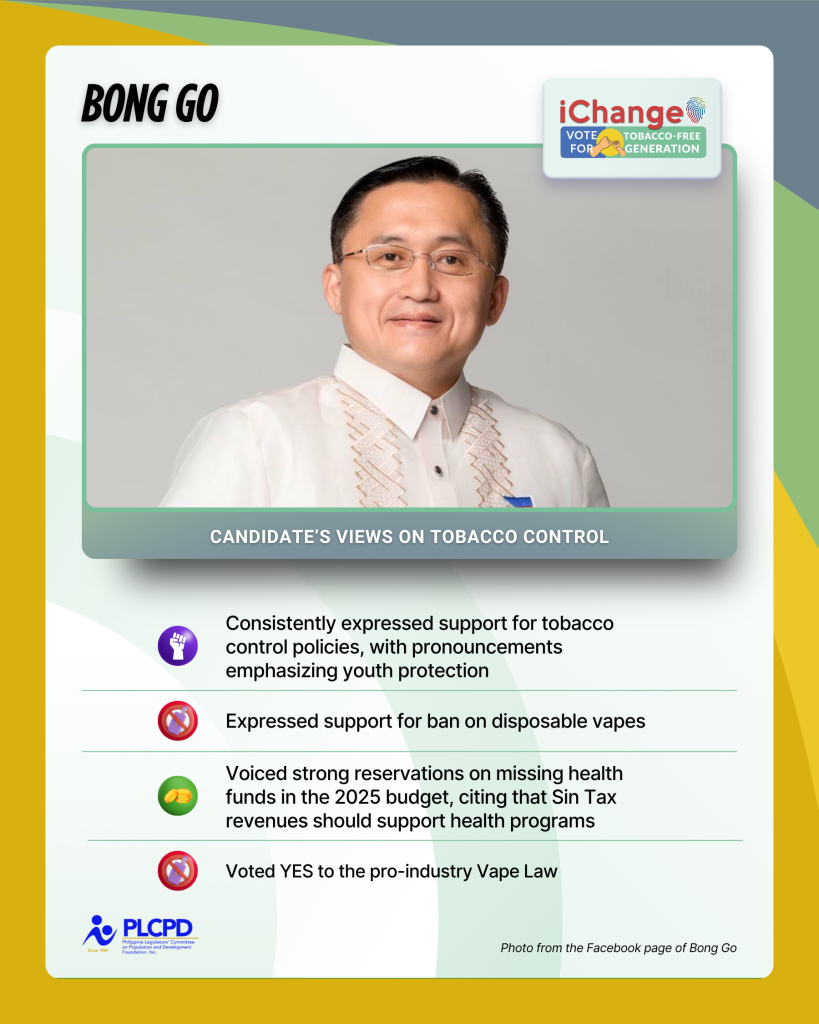 Stances of 2025 senatorial candidates on key policy issues in tobacco control