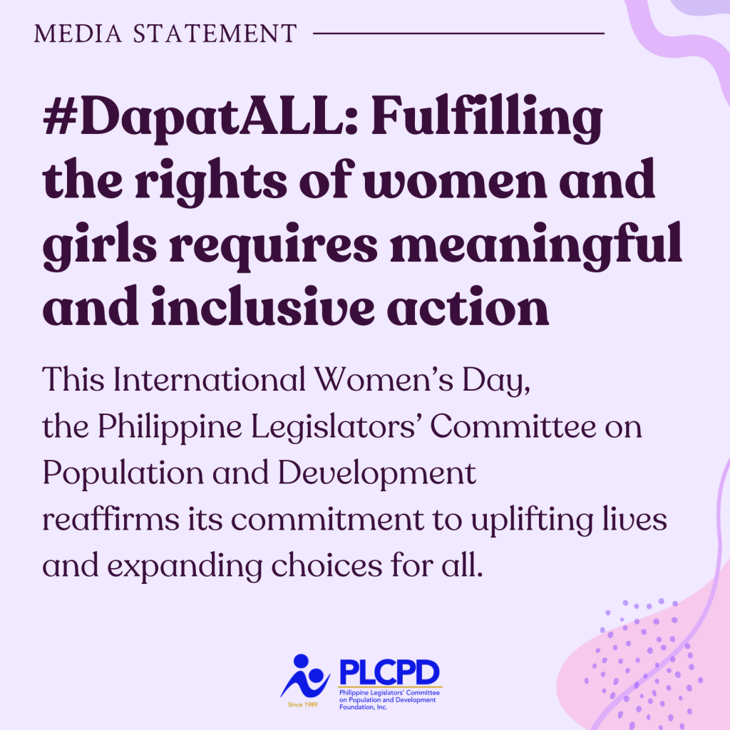 This International Women’s Day, the Philippine Legislators’ Committee on Population and Development (PLCPD) reaffirms its commitment to uplifting lives and expanding choices for all.