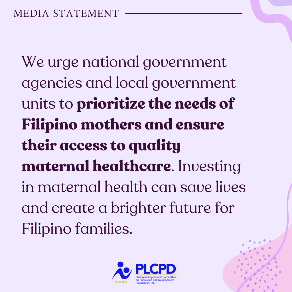 We also urge national government agencies and local government units to prioritize the needs of Filipino mothers and ensure their access to quality maternal healthcare. Investing in maternal health can save lives and create a brighter future for Filipino families.