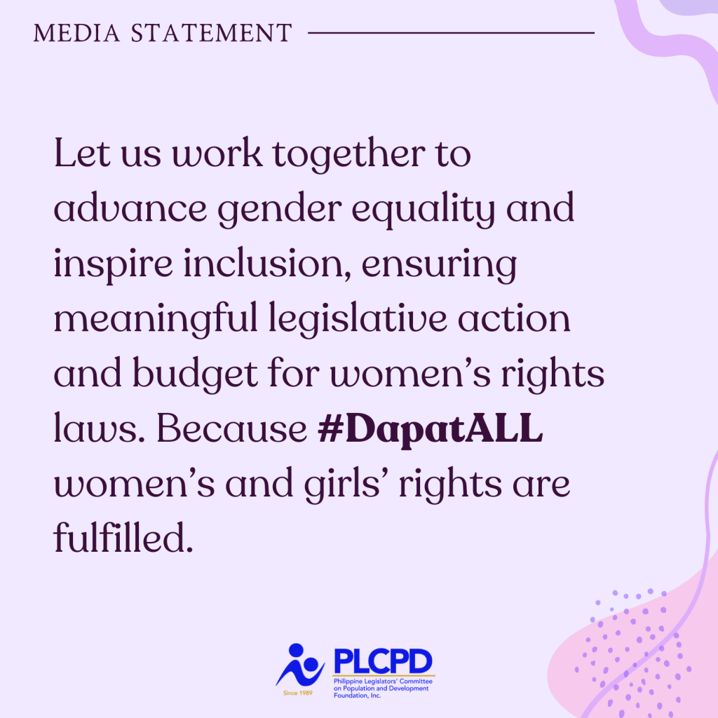 This March 8, PLCPD invites everyone to work together to advance gender equality and inspire inclusion, ensuring meaningful legislative action and budget for women’s rights laws. Because #DapatALL women’s and girls’ rights are fulfilled. #