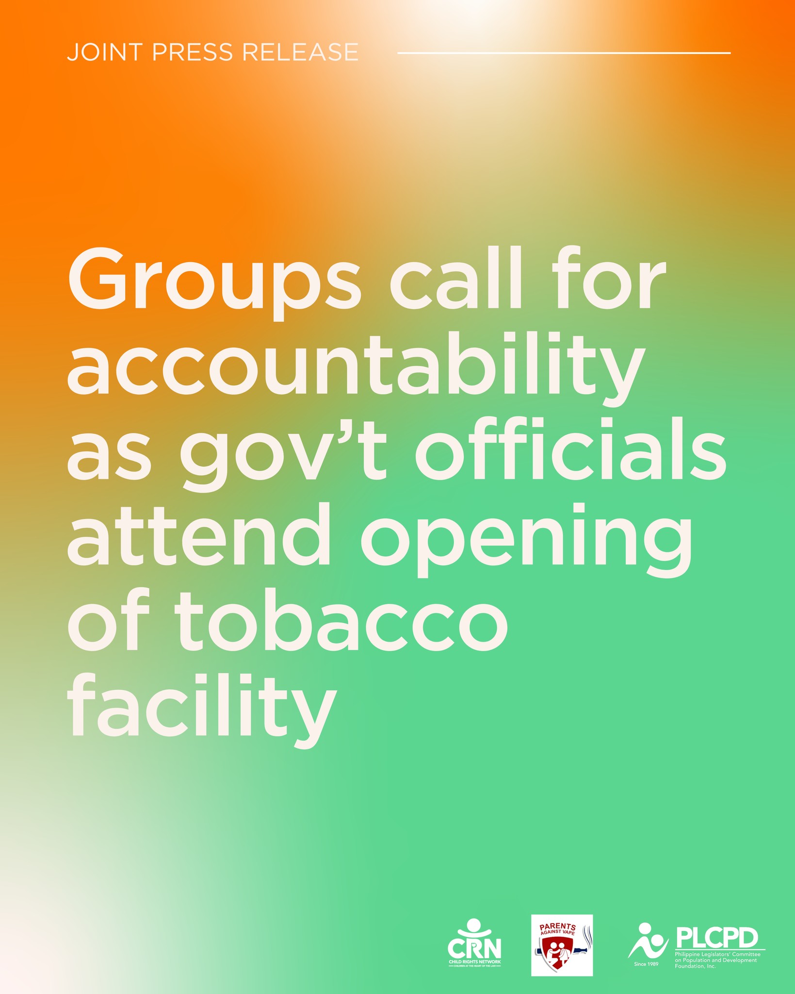 Parents Against Vape, Child Rights Network, and the Philippine Legislators’ Committee on Population and Development are calling for accountability for the blatant show of government support to a ‘deceitful’ industry.