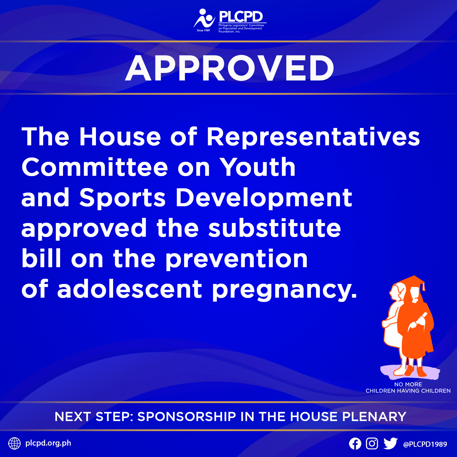 During its 6th regular meeting on Tuesday morning, the House Committee on Youth and Sports Development favored the proposed substitute bill seeking to develop a comprehensive policy that addresses the sexual and reproductive health needs of adolescents through age-appropriate comprehensive sexuality education; access to information and services; and, measures to prevent unintended pregnancies and reduce adolescent childbearing. The bill also institutionalizes the social protection of adolescent parents and their children.