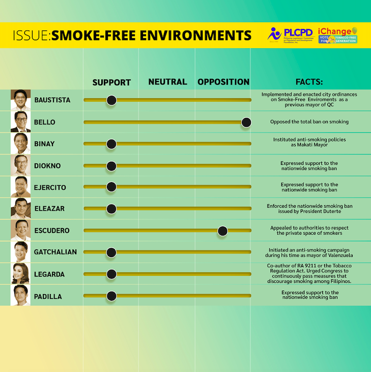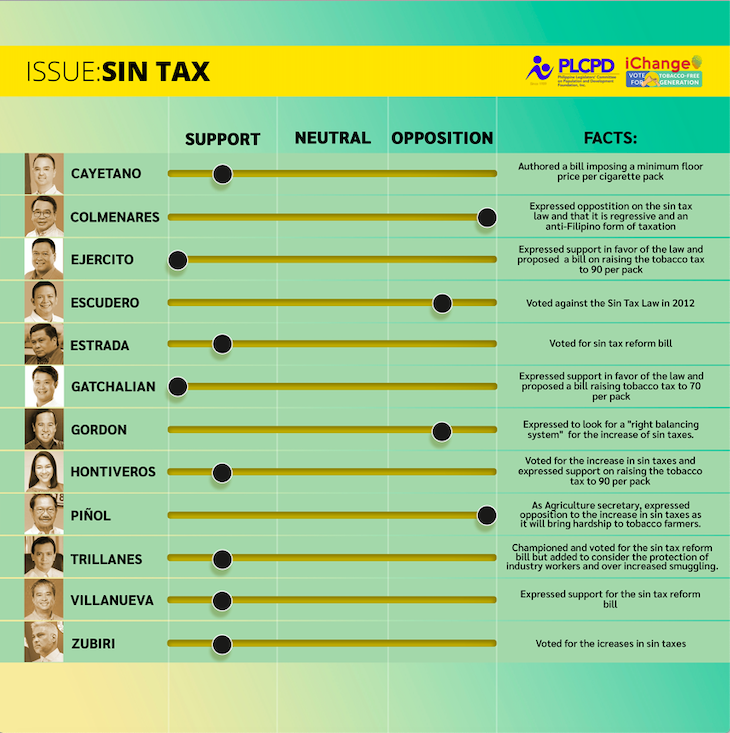 We looked at the position and track record of senatorial candidates on the following policy issues in tobacco control: