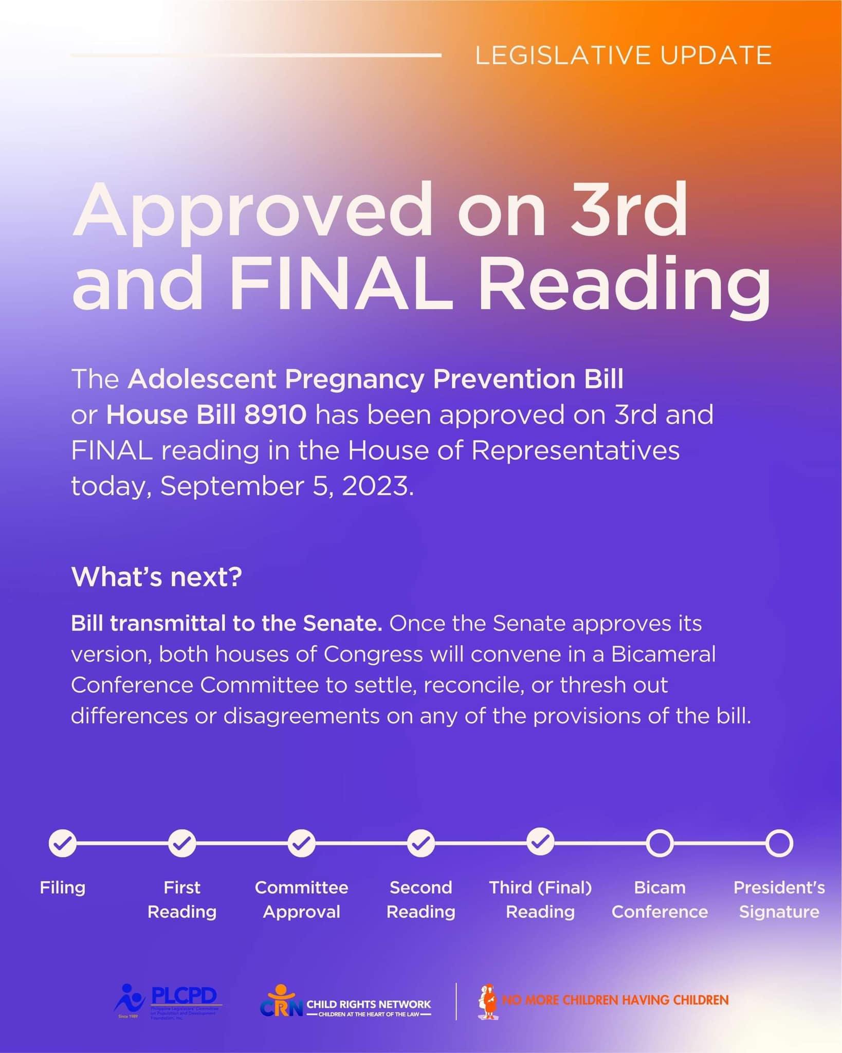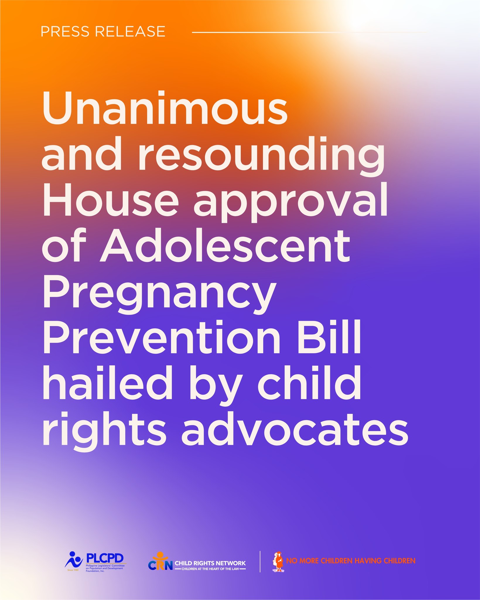Unanimous and resounding House approval of Adolescent Pregnancy Prevention Bill hailed by child rights advocates