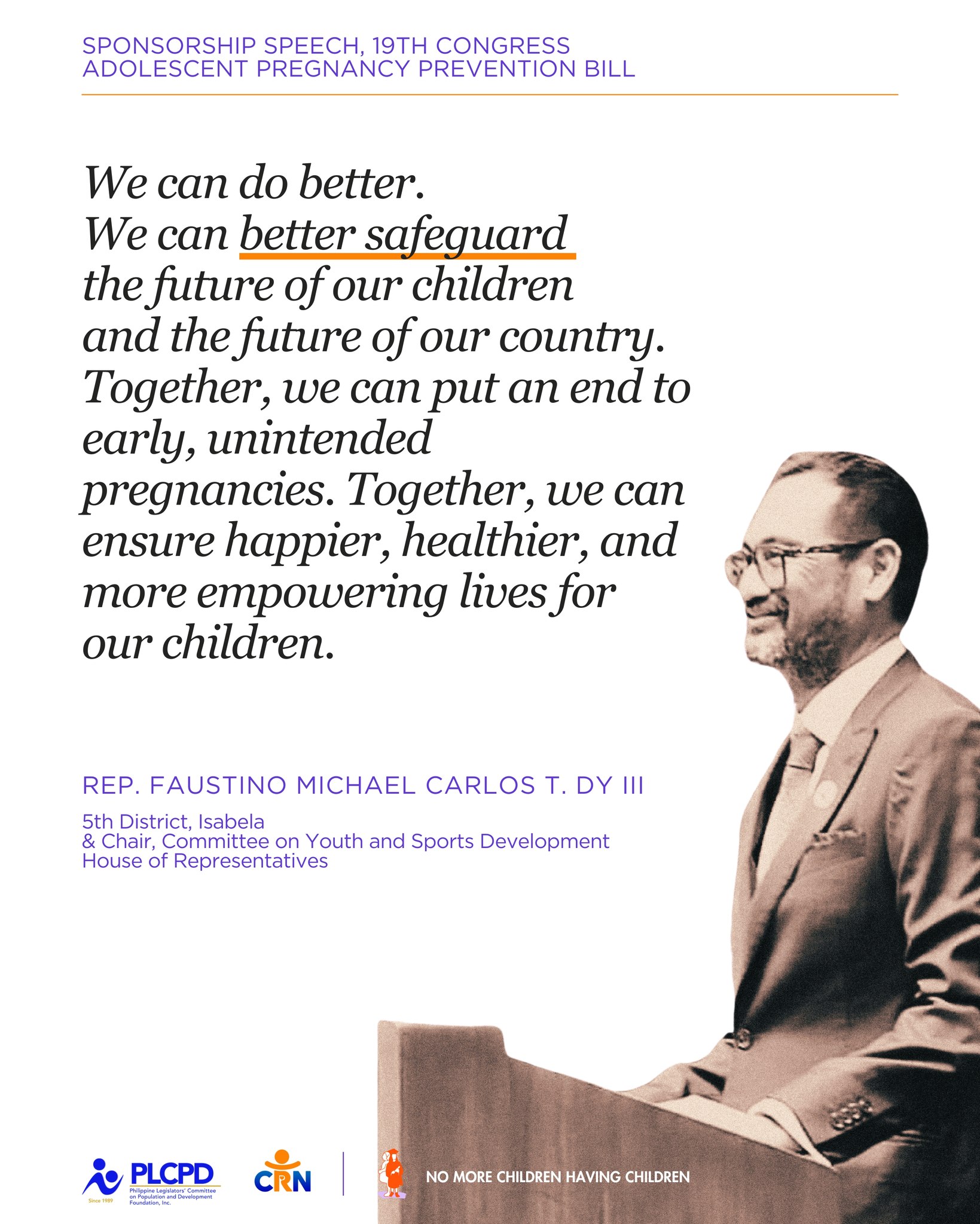 “We deeply thank our legislative champions: Committee on Youth and Sports Development Chair, Rep. Faustino Michael Carlos T. Dy III, and authors Rep. Edcel Lagman and Rep. Raoul Manuel of KABATAAN PARTYLIST. Their tireless advocacy has brought us closer to a future where no child is burdened with early parenthood,” Mr Dongeto said.