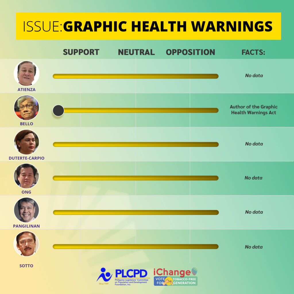 Graphic Health Warnings Law. The Law requires all tobacco products manufactured or imported for sale in the Philippines to carry graphic health warnings, covering 50% of any tobacco package and containing a picture warning and an accompanying textual warning that is related to the picture.