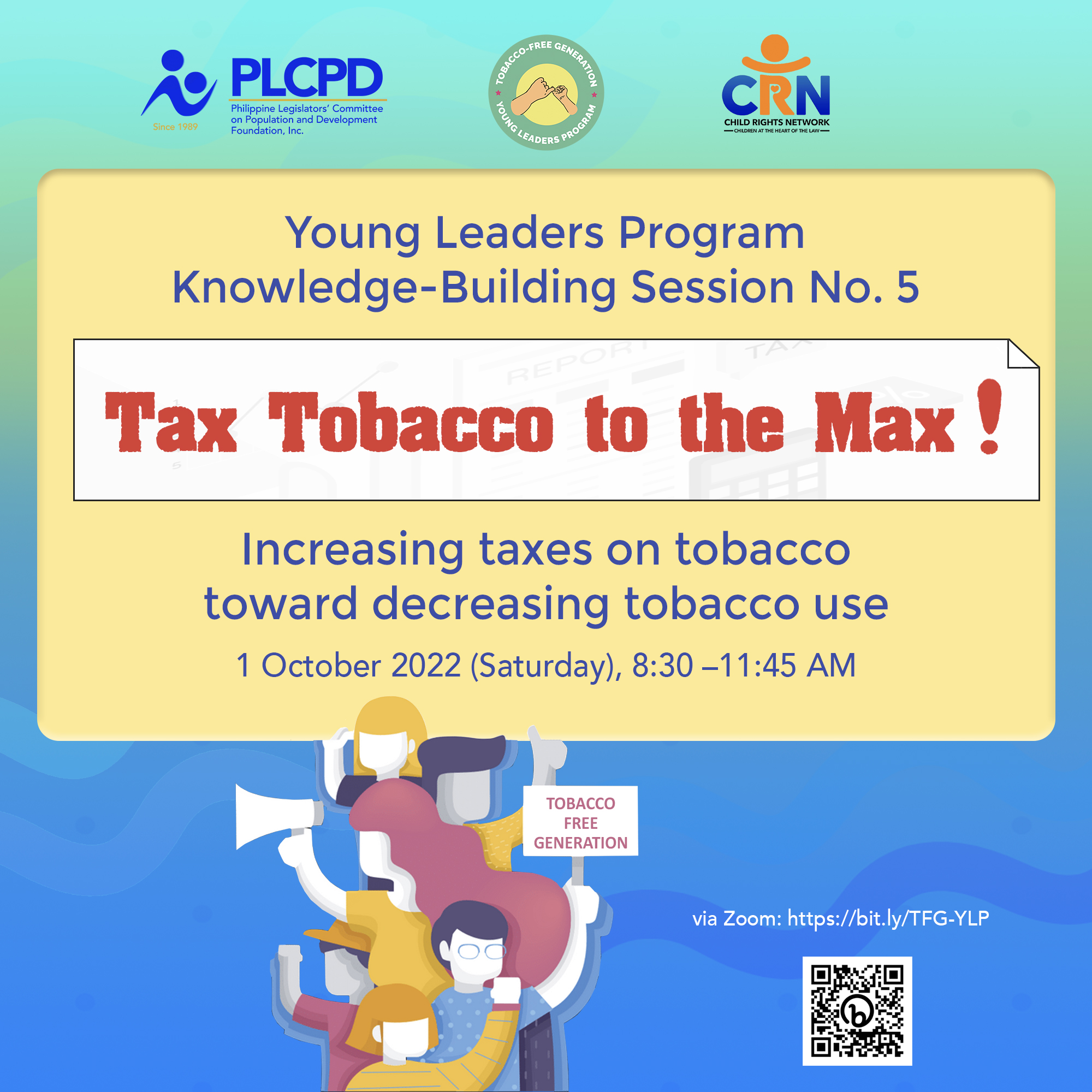 More than 20 delegates of the Young Leaders Program (YLP) committed to pursue the advocacy for higher taxes on tobacco products during the knowledge-building session held on October 1, organized by the Philippine Legislators Committee on Population and Development (PLCPD) and the Child Rights Network (CRN)